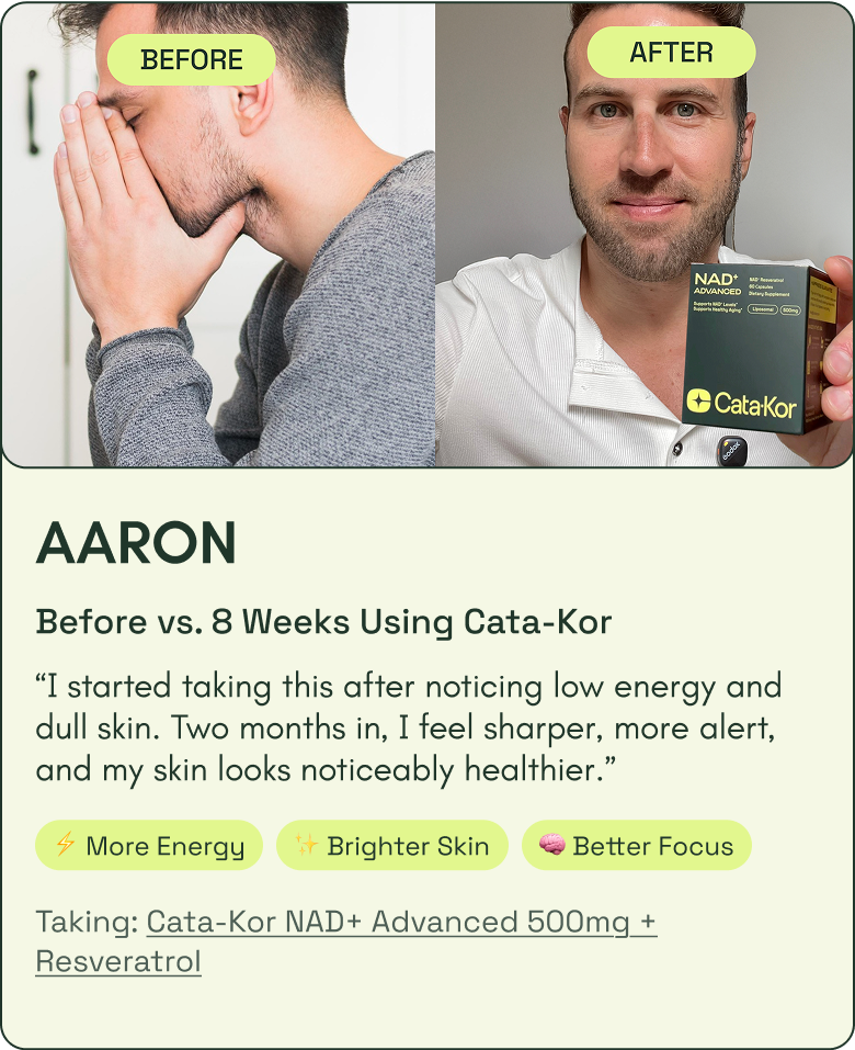 Catakor Advanced+ is designed to restore NAD+ - the essential molecule behind skin renewal, cellular energy, mental clarity, deep sleep, and stress resilience activating your body’s natural energy systems with just one daily dose.