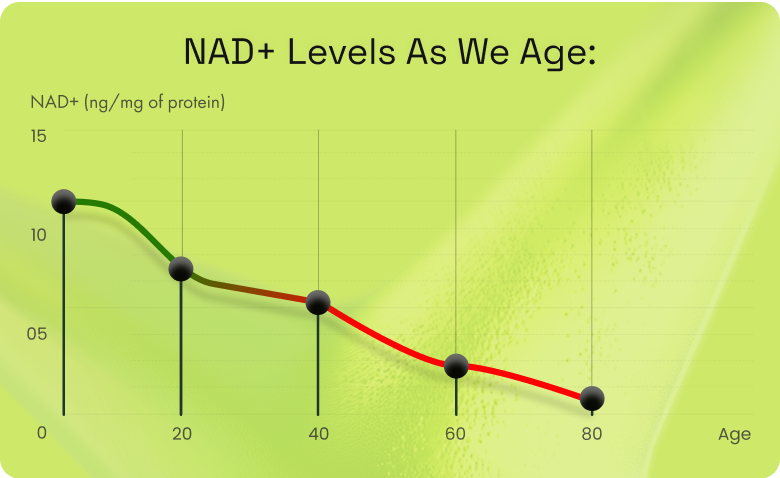 Triggering the Chain Reaction Behind Aging By age 40, your NAD+ levels can fall by more than 50% - slowing cellular repair and accelerating the visible and invisible signs of aging.