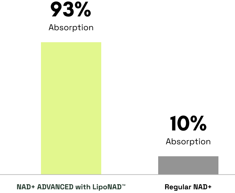 Our patented LipoNAD™ delivery system wraps each molecule in a liposomal layer — helping it bypass digestion and reach your cells where it’s needed most.